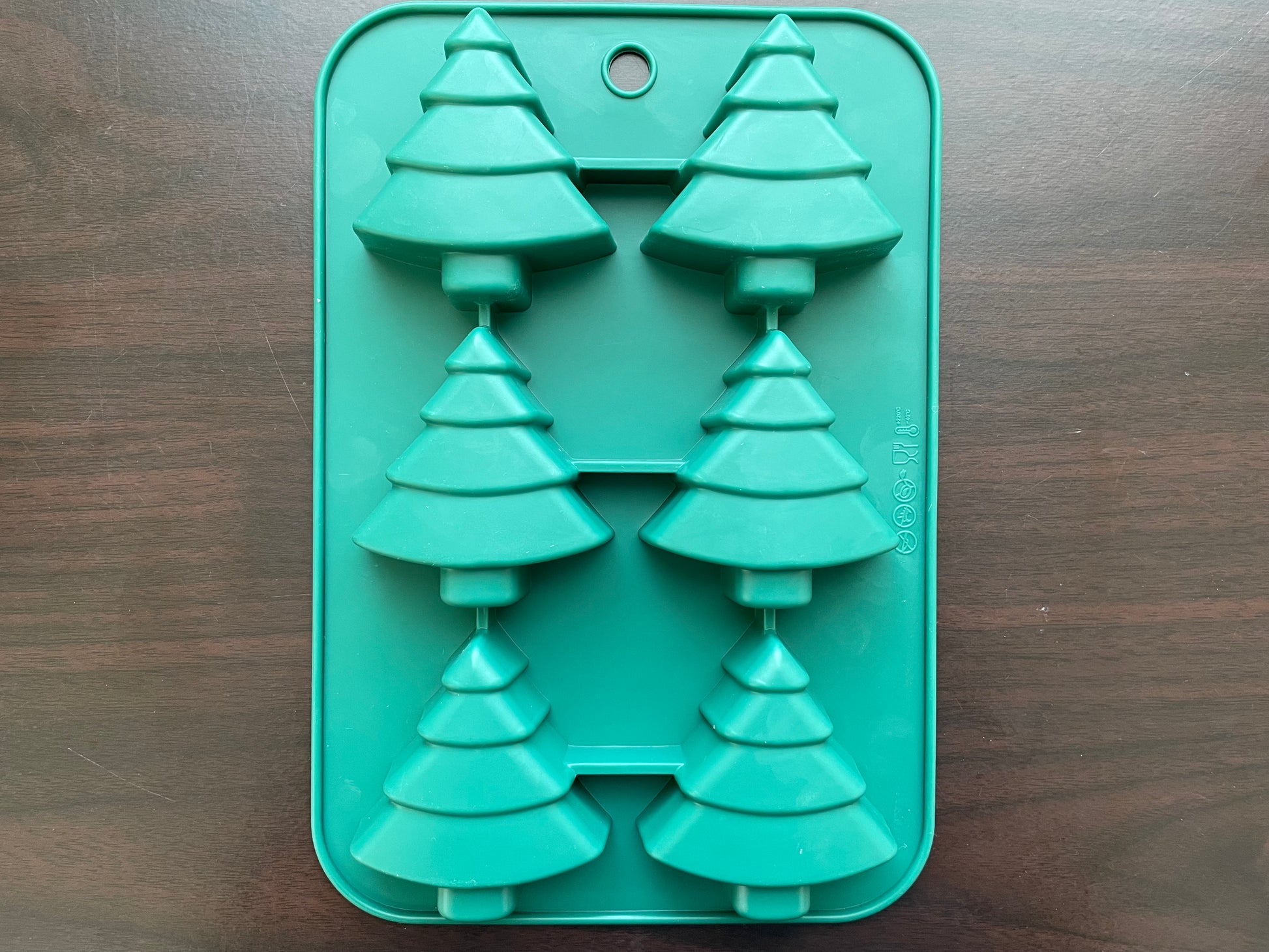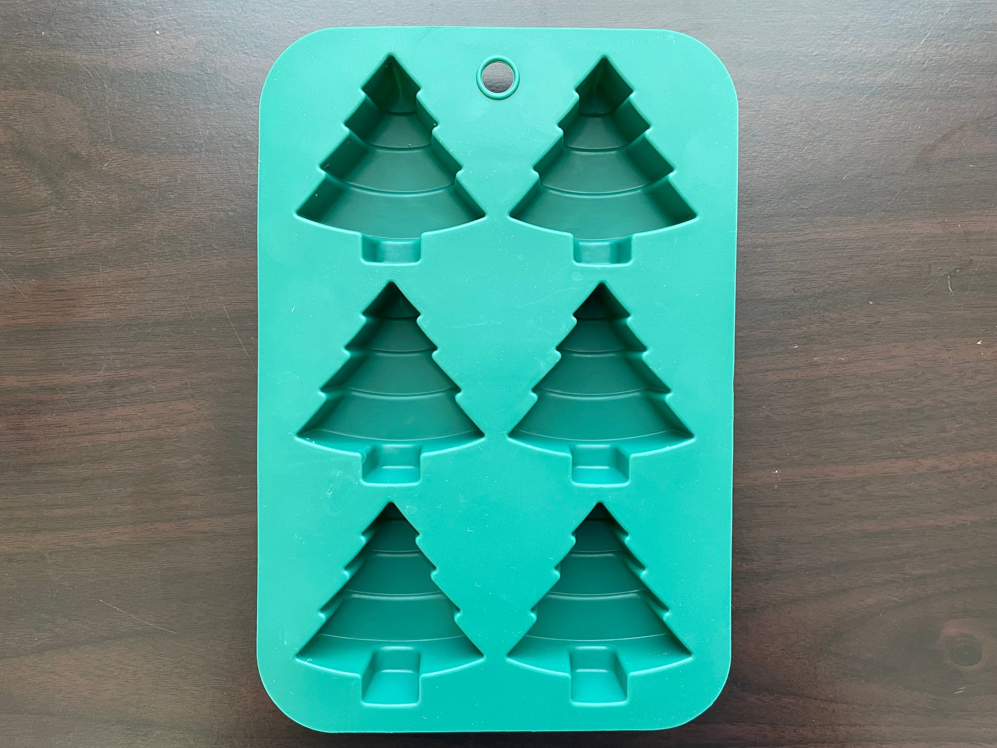 This versatile silicone mould has 6 cavities. Each tree cavity holds approximately 50g soap.